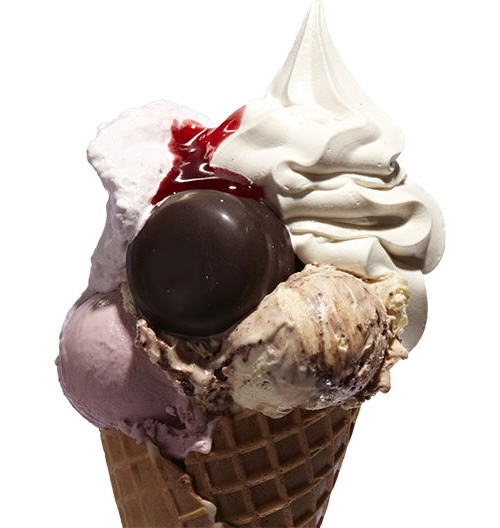 2 frit valg kugler med frisklavet soft-ice og chokolade sauce